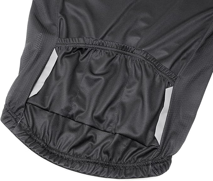 Faixas refletivas nas laterais dos bolsos traseiros aumentam a visibilidade do ciclista em condições de baixa luminosidade, contribuindo para maior segurança em pedaladas noturnas ou em dias nublados.